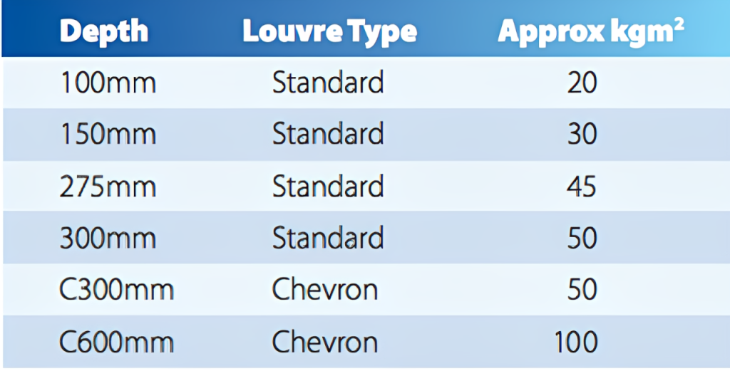 | Model | Louvre Depth (mm) | 63 | 125 | 250 | 500 | 1K | 2K | 4K | 8K |
